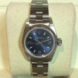 £1,799 Stock number: 12-36-031Lady’s Oyster Perpetual non-date model 67230 with very smart blue / 3-6-9 dial on Oyster 78340 bracelet. This 1996 model is in beautiful condition and comes with a later Rolex box, Oyster booklet, red swing-tag and our own warranty card. The NEW equivalent is now £3,250!