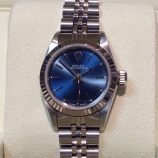 £1,899 Stock number: 12-31-006Lady’s steel and white metal Oyster Perpetual non-date model 67194 on Jubilee 62510 bracelet with smart blue / baton dial. In excellent condition with a later Rolex box-set, Oyster booklet, red swing-tag and our own warranty card. The NEW equivalent is now £3,900!