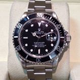£3,999 Stock number: 32-29-004Stainless steel Rolex Date Submariner model 16610 with black dial and bezel insert on Oyster Fliplock 93150 bracelet. Comes with 16610 boxes, Oyster booklet, swing-tag and UK papers from Thurlow Champness & Son in Bury St. Edmunds dated August 1996. Service marks inside the case-back suggest it has been back to Rolex UK for service work in 1998 and 2001, while we ourselves had it serviced by a Rolex-trained watch-maker in August 2014, with a new crown and bezel insert included. This watch was traded back in recently and is a desirable model in very nice order, albeit with some wear to the bracelet. The NEW equivalent has just increased to £6,250!
