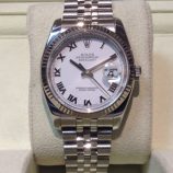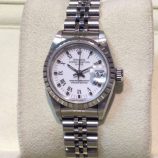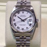 £2,399 Stock number: 10-48-170Stainless steel Rolex Datejust model 16200 with brilliant white / roman numeral dial on Jubilee 62510 bracelet. In lovely condition with only slight signs of wear, it comes with original boxes, Datejust booklet, red swing-tag and UK papers from Ernest Jones dated January 2005. The NEW equivalent is now £4,500!