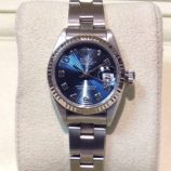 £2,299 Stock number: 12-32-011Steel and white metal Datejust model 79174 from 2001 on Oyster 78240 bracelet with a later blue / concentric circles / arabic numeral dial. Comes with Rolex boxes, an Oyster booklet, three service slips from Rolex UK and our own warranty card. The NEW equivalent is now £4,750!