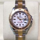£3,299 Stock number: 42-30-001Lady's bicolour Yachtmaster model 69623 with white dial on Oysterlock 78733 bracelet. In very nice condition having just had a movement service and new glass fitted, this watch comes with original boxes, Yachtmaster booklet and UK papers from John Mason Jewellers in Rotherham dated Christmas Eve 1999. The NEW equivalent is now £6,600!