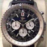 £2,399 Stock number: 30-38-065Stainless steel Breitling Navitimer 50th Anniversary model A41322 with black dial on leather strap. This model was released to celebrate 50 years of the Navitimer model, from 1952-2002. Comes with Special Edition Navitimer booklet, a slide rule calculator / instructions, a modern box-set and our own warranty card. The strap is lightly worn but otherwise the watch is in excellent condition for its age. Please note that this is NOT a water-resistant model. One of our Breitling-trained specialists, Phil or Paul, will be delighted to provide further assistance.