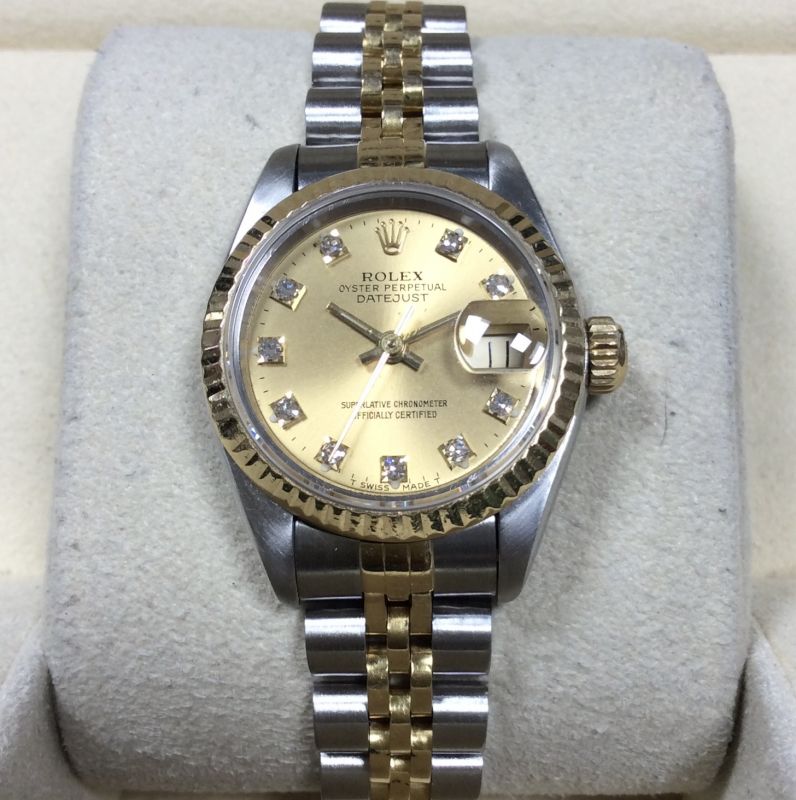 26mm bicolour Rolex Datejust model 69173 with classic champagne / diamond dot dial on Jubilee 62523 bracelet. This circa 1995 watch is in very pleasing condition, but priced to reflect moderate, general wear and signs of age to the dial that may be seen under an eye-glass. Comes with Rolex boxes, an Oyster booklet, our own warranty card and a certificate from the ALR Watch Register confirming that we checked it with them. The NEW equivalent is now £10,950 !
