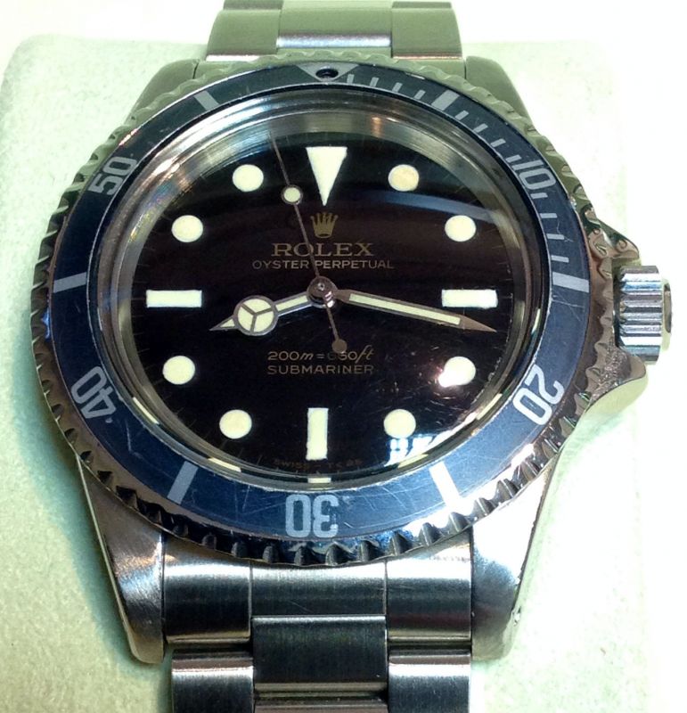 This well-used Submariner 5513 from the 1960s is especially nice for retaining its original gilt-text dial, rather than having one of the later white-text versions. Note the depth rating, presented in metres before feet on the early examples like this. The 5513 was launched in 1962 and remained in production with little change for 30 years. Roger Moore would wear one in his first outing as 007 in “Live and Let Die,” but for real-life professionals including the UK’s pioneering Royal Navy Clearance Divers the watch would prove a genuine, reliable workhorse.