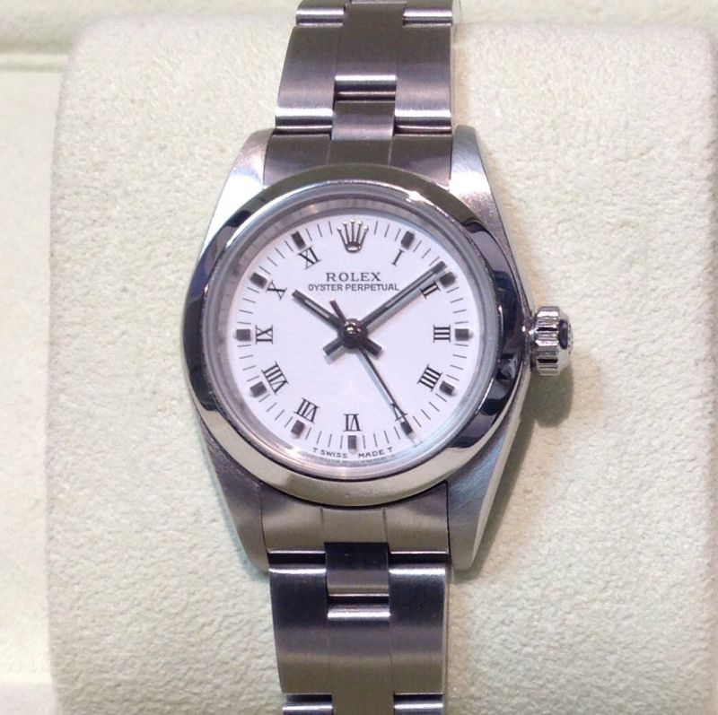 Stainless steel Oyster Perpetual non-date model 76080 from 1999 with white / roman numeral dial on Oyster 78240 bracelet. In very nice condition with a later Rolex box, Oyster booklet, red swing-tag and our own warranty card. The NEW equivalent is now £3,550!