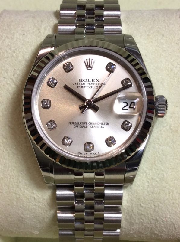 UNWORN, in delivery stickers! Mid-size steel and white metal Rolex Datejust model 178274 with silver / diamond dot dial on Jubilee 63160 bracelet. Has boxes, Datejust booklet, swing-tags and international Rolex warranty card dated June 2015. The NEW RRP is now £6,300!