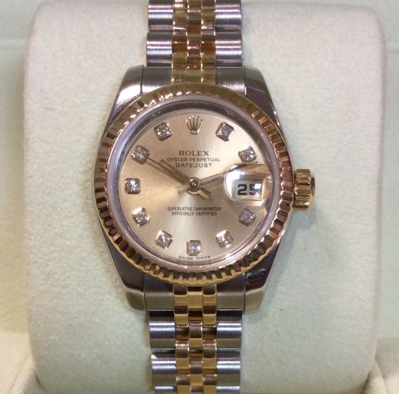 Bicolour Rolex Datejust model 179173 on Jubilee 63133 bracelet with champagne / diamond dot dial. Has Rolex boxes, Datejust booklet, numered green swing-tag and UK papers dated June 2007. The NEW RRP is now £7,100!