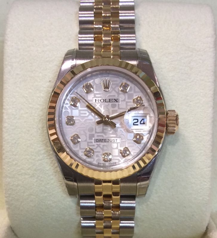 UNWORN, in delivery stickers! Bicolour Rolex Datejust model 179173 on Jubilee 63133 bracelet with silver Jubilee / diamond dot dial. Has boxes, Datejust booklet, both green swing-tags and international Rolex warranty card dated August 2015. The NEW RRP is now £7,100!