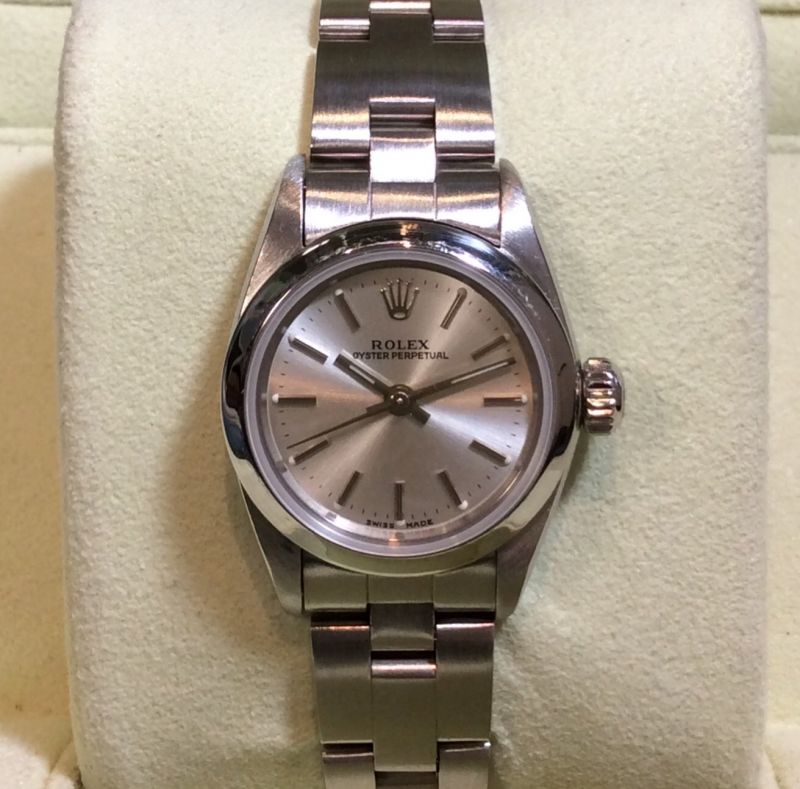 Stainless steel Rolex Oyster Perpetual non-date model 67180 with smart silver / baton dial on Oyster 78340 bracelet. In very good condition with Rolex boxes and original UK papers from Mappin & Webb dated March 1994. The NEW equivalent is now £3,900!