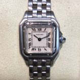 £999 Stock number: 12-19-020Lady’s stainless steel Cartier Panthere mini quartz bracelet watch from 2002, case style 1320 with cream / roman numeral dial. A very pretty watch which would make a lovely gift……or a nice treat for yourself ! Comes with our own box and warranty card — please note that the photograph shows it with the original certificate from 2002 which was no longer with the watch when it came back to us in part-exchange recently. A new steel Cartier Demoiselle is very similar but now has an RRP of £3,000 !