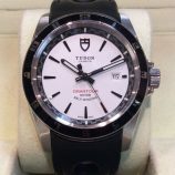 £899 Stock number: 60-07-027Superb example! Stainless steel Tudor Grantour model 20500N with white / baton dial on retro-style leather strap with Tudor safety clasp. This beautiful watch has spent much of its short life in our safes and remains in outstanding condition. It comes with impressive, original boxes, numbered red swing-tag, instructions and UK warranty card. The electronic receipt from Beaverbrooks suggests that it was bought in March 2016, but the warranty card is dated March 2015. Please ask to speak with one of the Tudor specialists in the Miltons watch team: Phil or Paul.